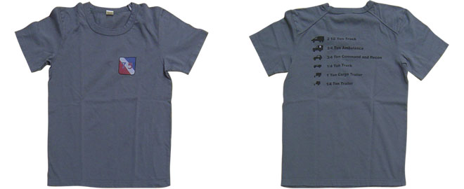 軍隊のトラックをモチーフにしたプリントです。 胸元にはエンブレムのプリントです。