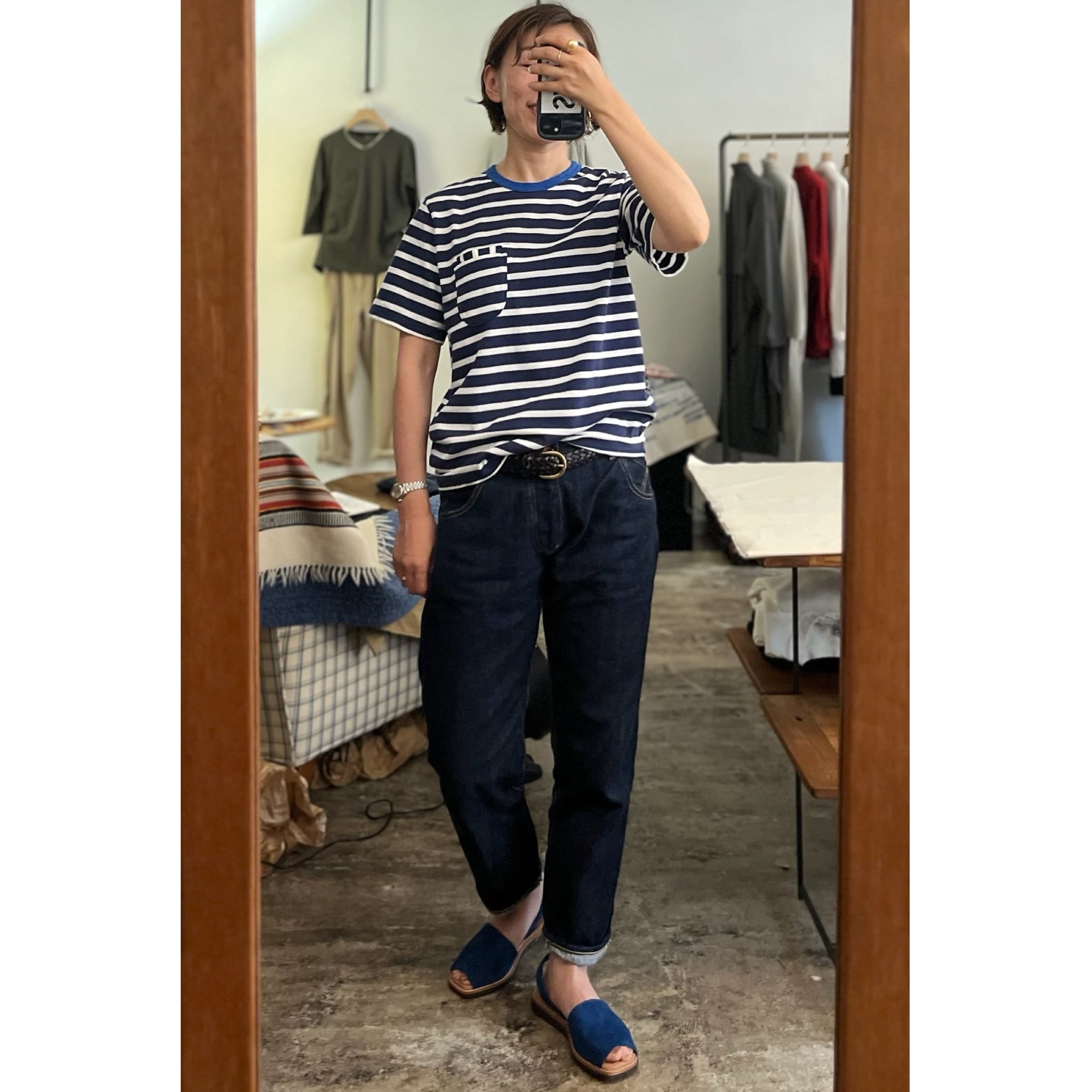 上質な綿素材で織り上げたオリジナルのボーダー素材です。使い込むことで凹凸感のある優しい質感と着心地の良さを実感できます。これからの夏本番。上質な素材のTシャツは欠かせないアイテムですよね!
