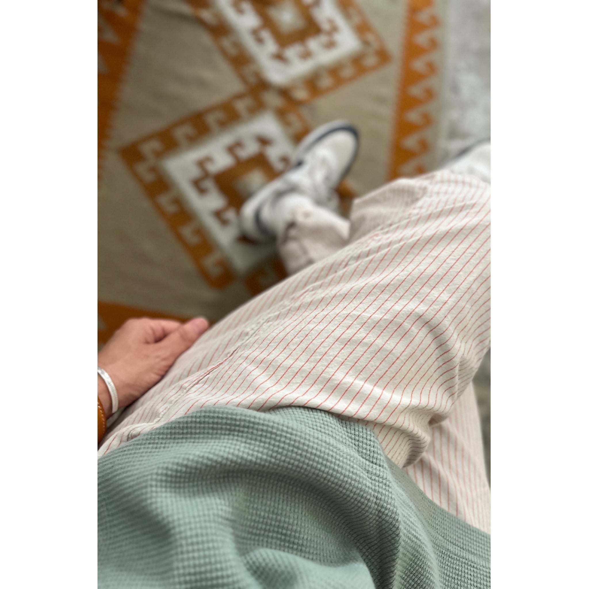 Simva123-0081-Bge 遠州織 Pin-Stripe Long Pant Beige×Orange