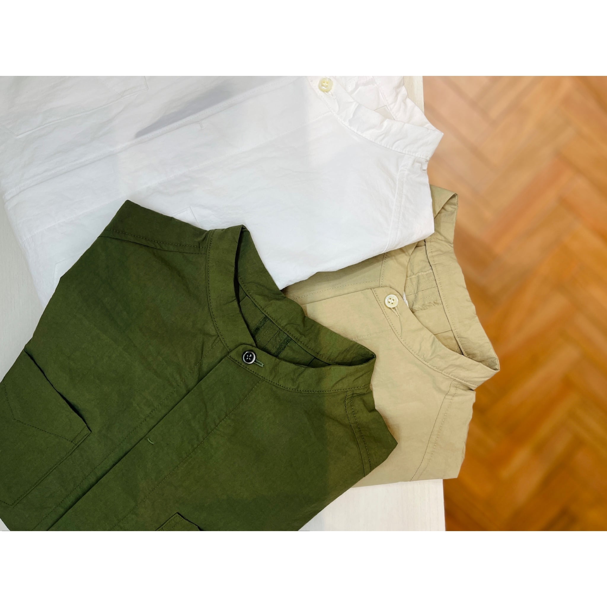 肌触りが独特なペーパーライクなシャツは軽く洗い晒しで少しシワが残っているぐらいでさらっと着るのがかっこいい。