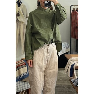 肌触りが独特なペーパーライクなシャツは軽く洗い晒しで少しシワが残っているぐらいでさらっと着るのがかっこいい。