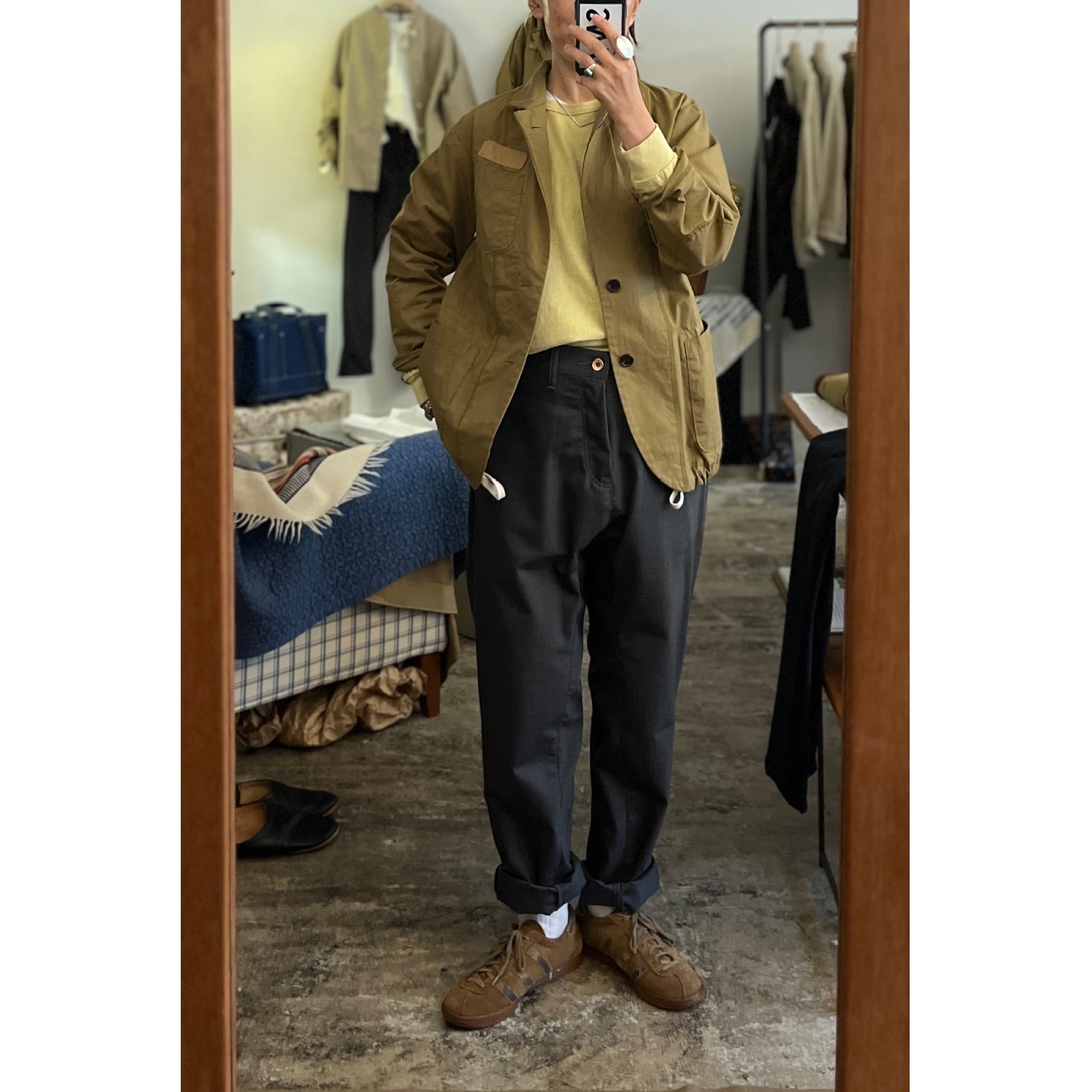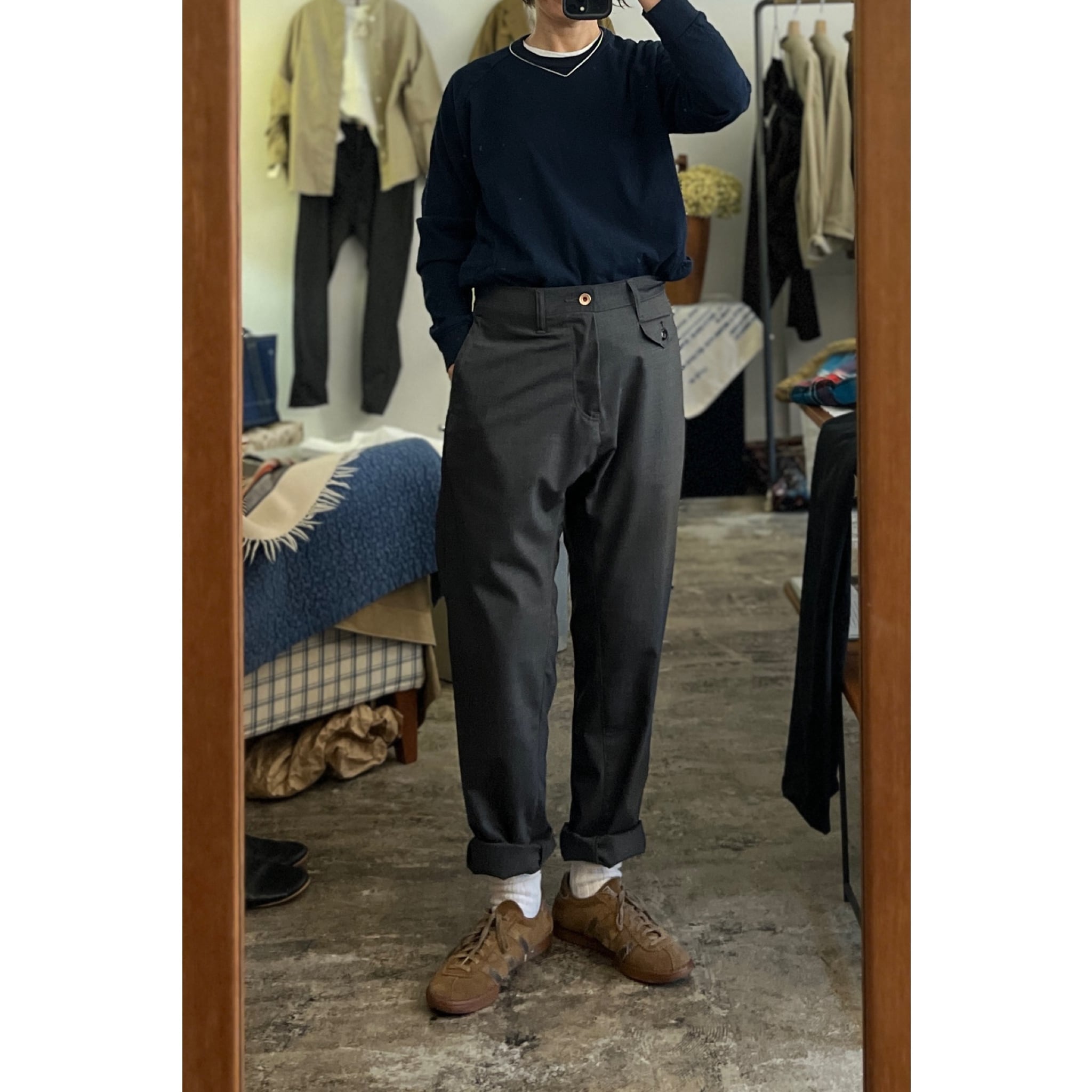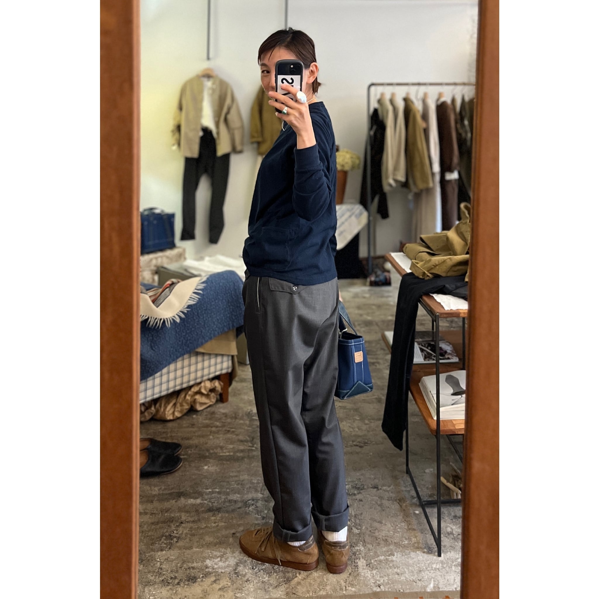 クオリティーの異なる高級綿素材を掛け合わせたオリジナルの素材です。サイドにポケットを配し少しゆったりシルエットです。裾のラウンドもポイントです。